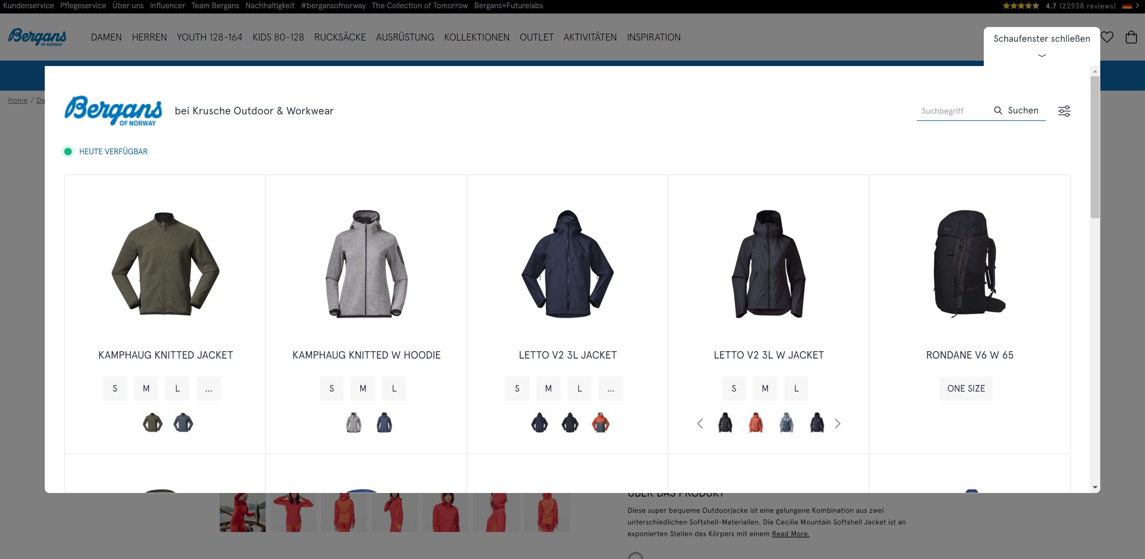 Das Digitale Schaufenster auf bergans.de