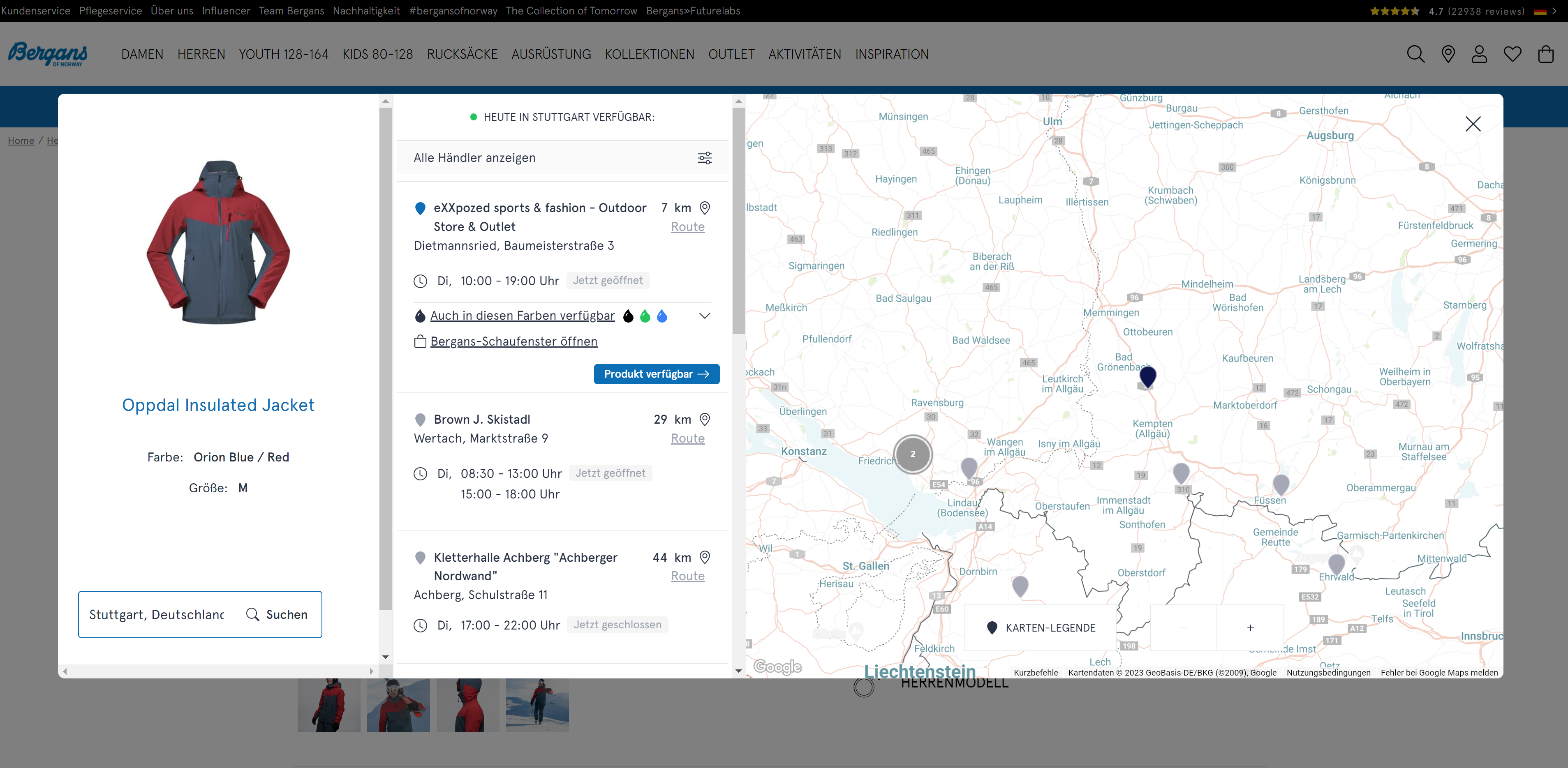 Das Where-To-Buy-Local-Tool auf bergans.de